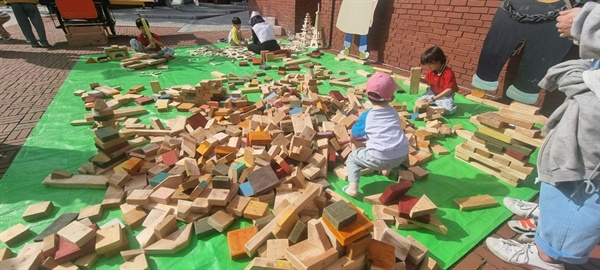 특히, '어린이날다'가 추구하는 세 가지 방식 중에서 이번 '예술로소풍'에서는 어린이들이 자유롭게 프로그램에 참여할 수 있도록 모듈형 놀잇감을 미리 만들었다. 지난달 28일, 전라남도 나주에서 선보여 큰 호응을 얻었던 '끼우는' 방식과는 조금 달라보였는데, 어린이들이 만든 모듈을 겁겹이 쌓아올려 조립하게 만드는 것이다. 이것은 마치 레고를 끼어맞추는 것처럼 정해진 모듈을 쌓을 수 있도록 배려한 것이다.