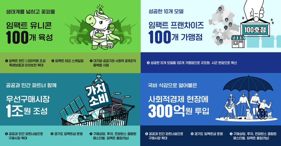 (임팩트 유니콘 : 매출액 100억 이상 또는 기업 가치 500억 이상의 사회적경제기업)