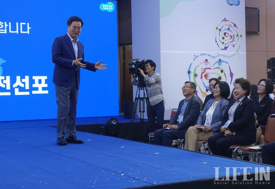 김동연 지사는 취임 이후 저소득층이나 발달 장애인 등 지원 정책을 정비하며, 사회적경제 방식으로 해결 방법을 모색했다. 올해는 전국에서 최초로 지자체 산하 공공기관인 경기도사회적경제원이 출범하여, 지원 사업을 적극적으로 수행하고 있다. 그는 먼저 "지금 사회적경제가 전반적으로 위기라고 한다. 정부로부터 대폭 예산이 삭감되어 초래된 일"이라고 내년도 예산의 문제를 지적했다. 그러면서 "사회적경제는 이념이나 정치적 편향성의 문제가 아니다. 이권 카르텔이 개입하는 영역이 아니라, 공공과 시장이 함께 시너지를 내서 지속가능한 경제를 만드는 것이 사회적경제라고 생각한다"라고 이야기했다.